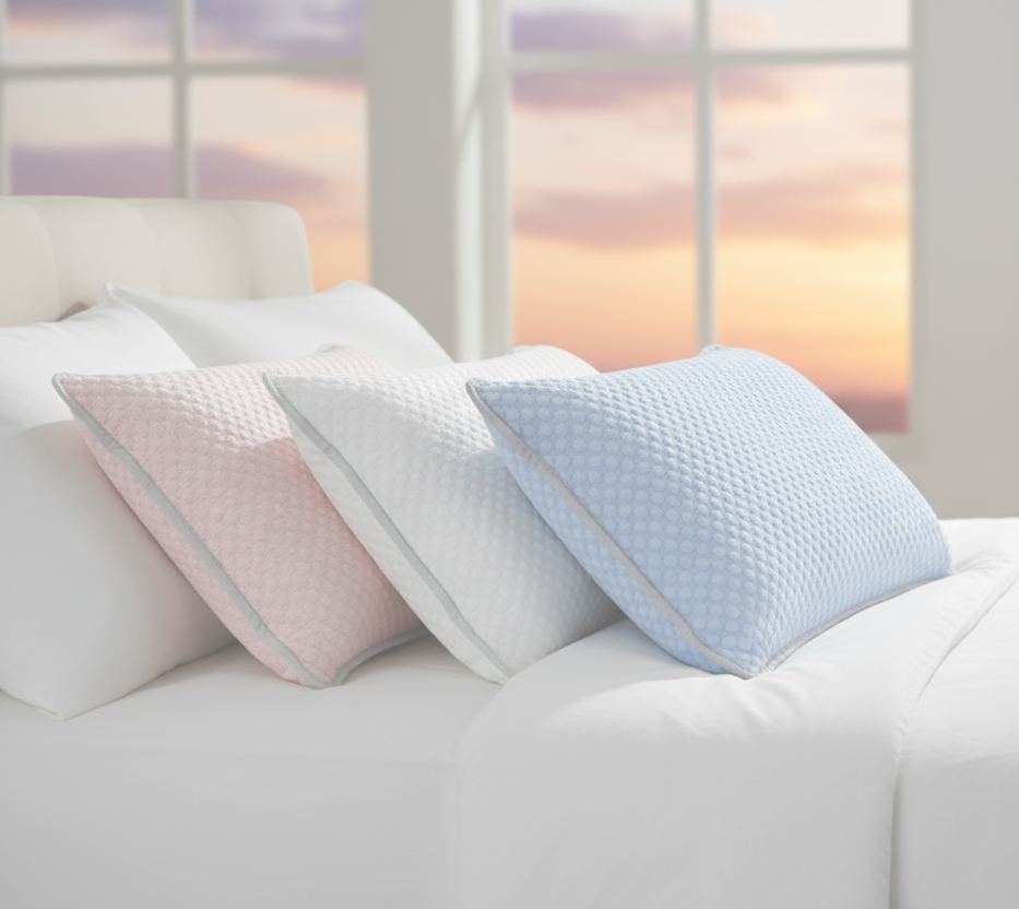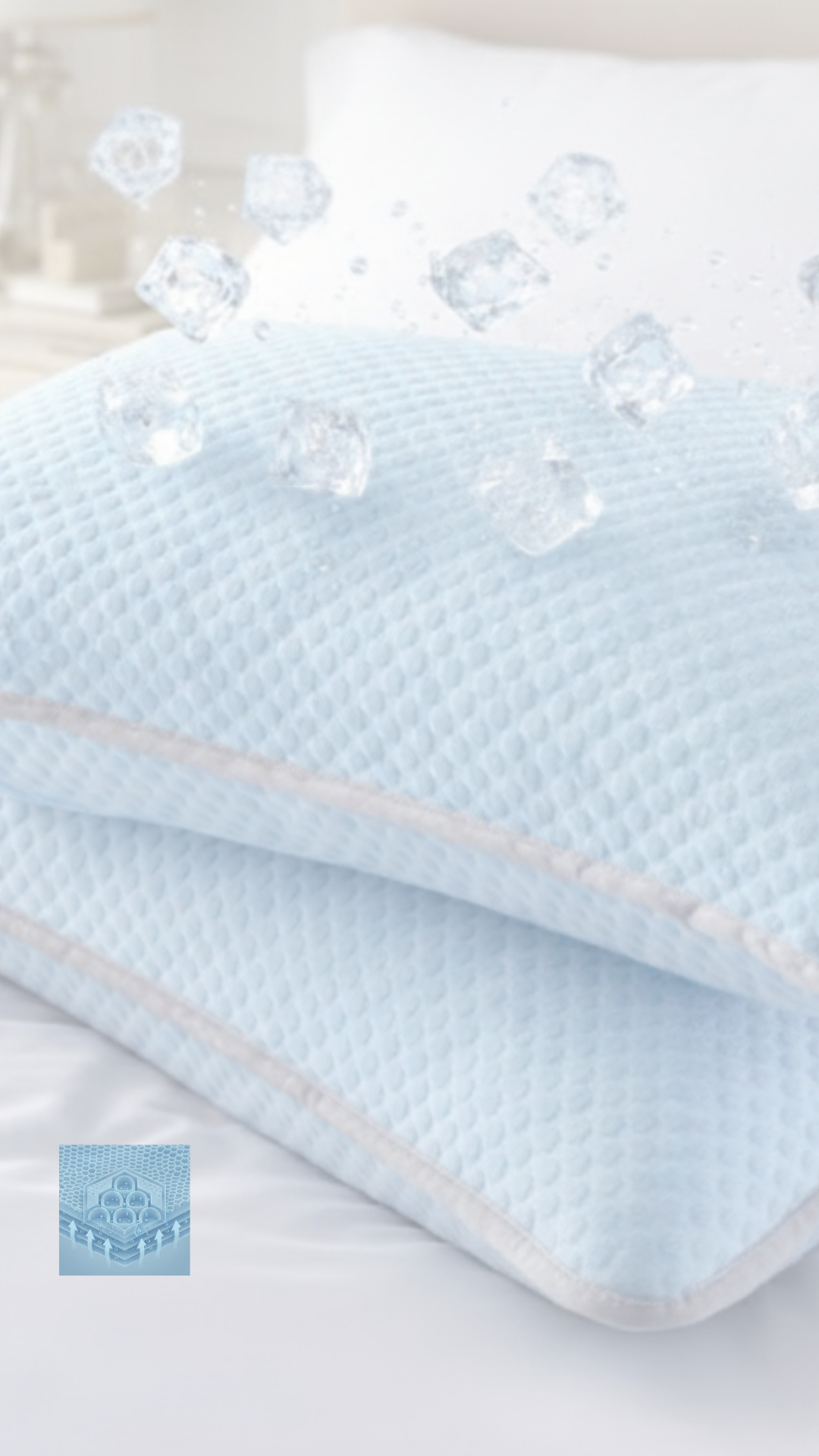 A cool, calming touch, a sense of comfort the instant you lie down. No effort. No adjustments. Just a quieter night, a gentler sleep, and the relief of waking up feeling more like yourself.
